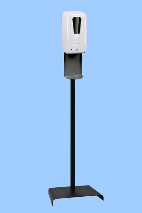 Farbe: Weiss Desinfektionsmittelspender + schwarze Desinfektionsmittelsäule